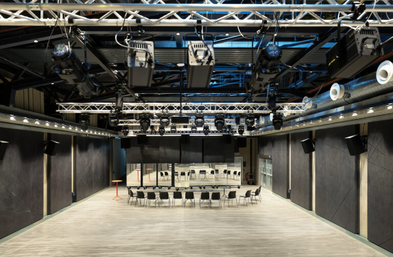 Velký sál s kapacitou 800 diváků a 360° hledištěm nabízí zcela nový standard kulturního prostoru v ČR.