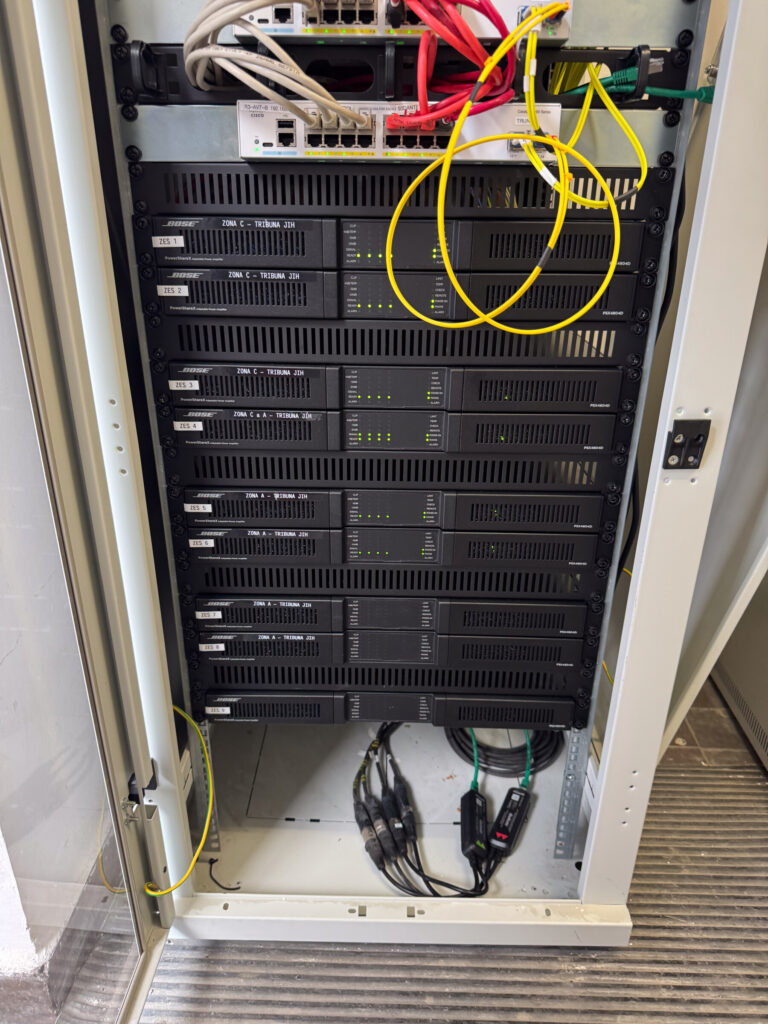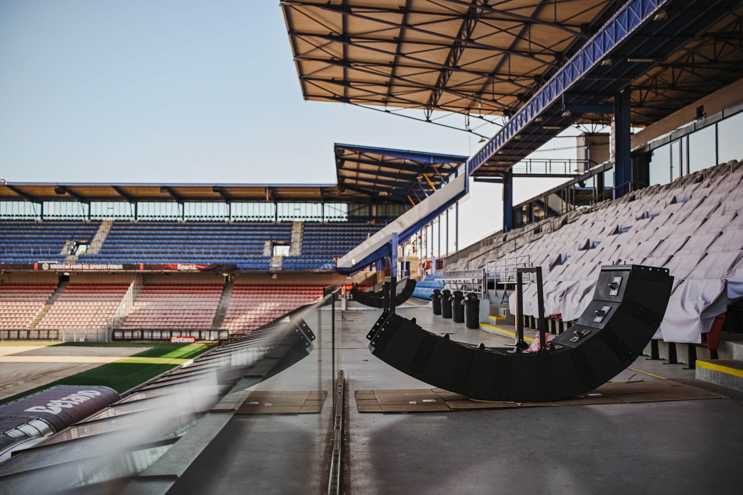 Pro fotbalový klub AC Sparta Praha jsme realizovali kompletní výměnu zastaralého ozvučovacího systému v epet ARENĚ. Nové řešení je postaveno na směrových reprosoustavách BOSE ArenaMatch, které jsou navrženy speciálně pro venkovní stadiony.